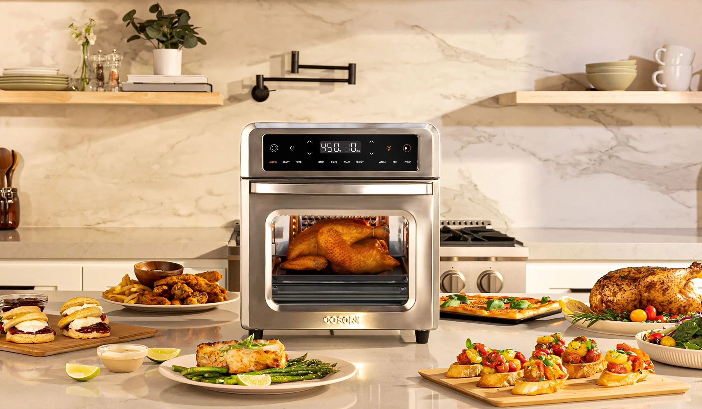 All-in-one countertop convenience: Air fry, bake, dehydrate, rotisserie, or roast to crispy perfection with ease.